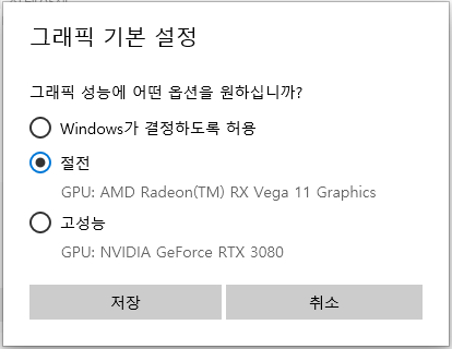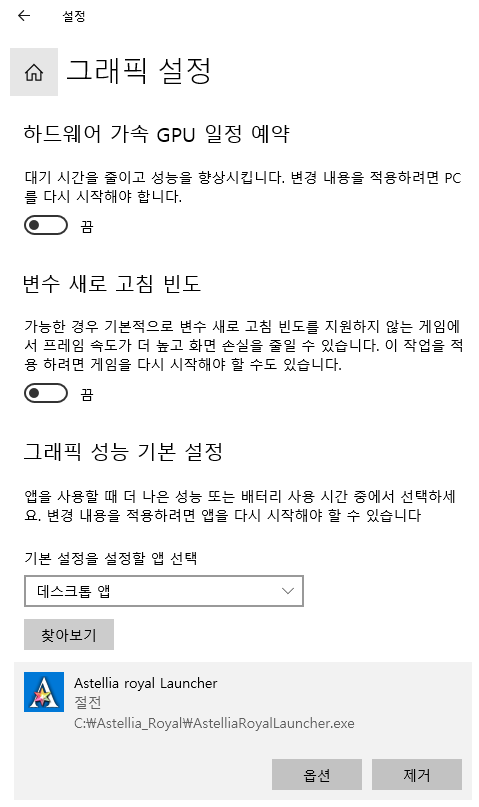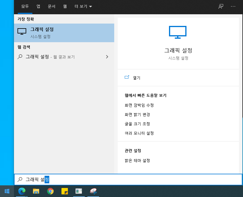 그래픽 설정이 켜지면 아래 찾아보기가 보일 것이다.