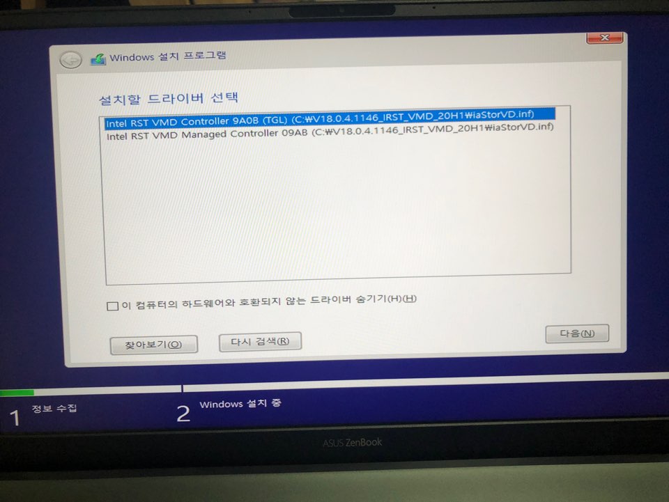 앞서 이야기한 VMD라는 기능이 들어가면서, 설치 위치를 로드하지 못하는 현상이 발생한다. 특히나 새로 산 제품에 이런 현상이 뜨면 난처하다. 하드웨어 불량인지도 확인해야 하기 때문이다. 노트북은 각 제조사에서 Intel Rapid Storage Technology(IRST)를 받는 것을 추천한다.
