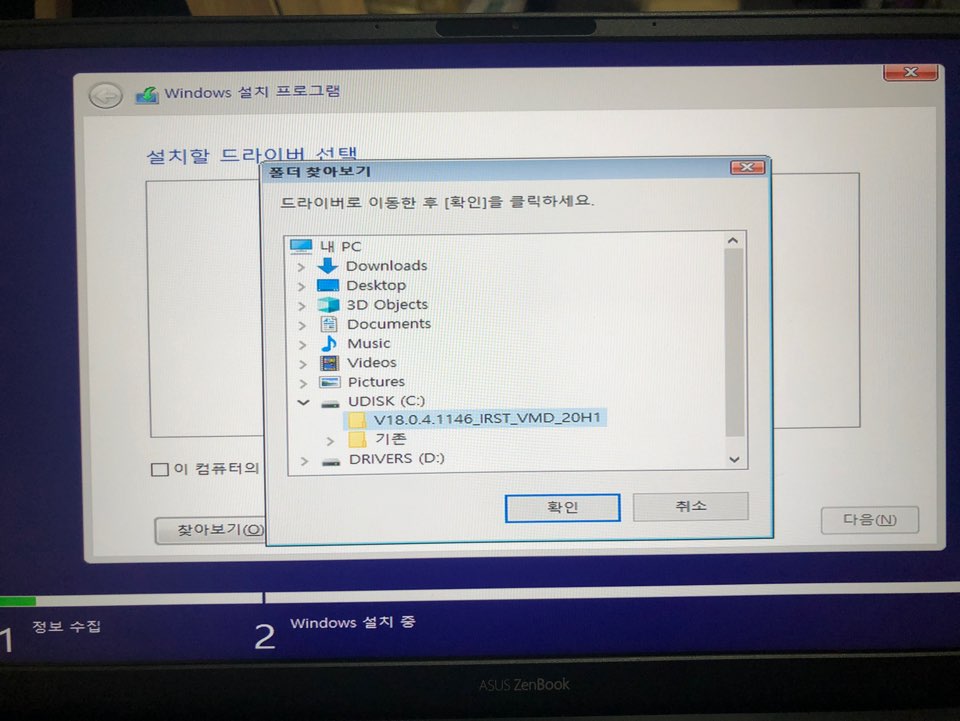 위 내용은 ASUS 기준으로 작성하겠다. 위 알집을 Windows 10 설치를 위한 USB내 적당한 폴더에 압축을 풀어준다. 그리고 위의 문제의 사진에서 보이는 드라이버 로드로 들어가서 아래와 같이 진행한다.
