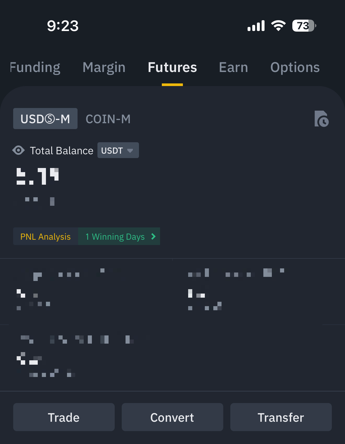 복잡할 수 있는데, 마지막으로 선물 거래에는 USDT로 바로 사용되는 것이 아닌, USDⓈ-M Futures로 트랜스퍼(Transfer)를 진행해야 가능하다.